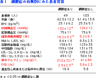 網膜症のある女性糖尿病患者は血管内皮機能(FMD)低下ハイリスク