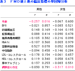 FMDと相関する因子、女性は網膜症の罹患、男性は年齢
