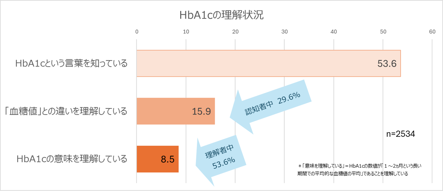 「HbA1c」と「血糖値」の違いを理解している人は全体の1割未満にとどまる