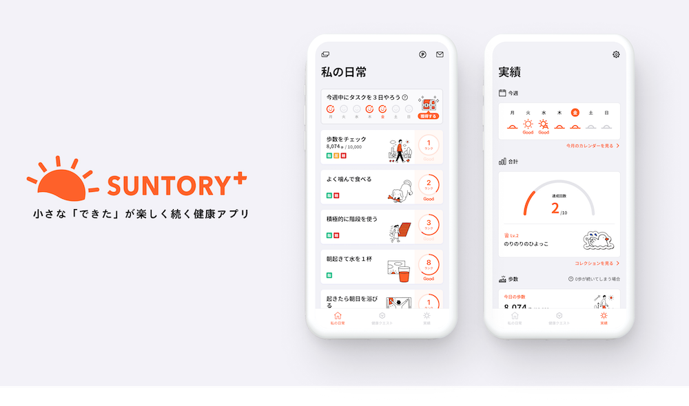 「サントリープラス」は、日常の中でできる超低ハードルな健康行動や定期的なイベントの開催で、